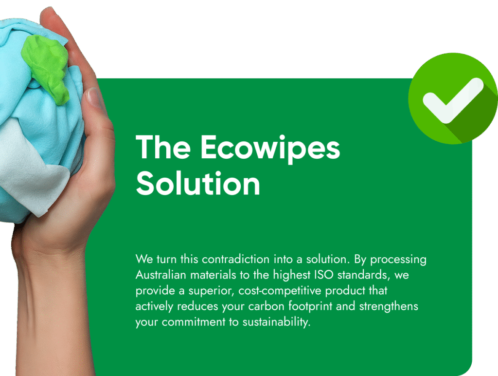 Ecowipes uses material collected right here in Australia, processed to the highest hygiene standards, and trusted by global leaders in mining, gas, petroleum, and iconic brands worldwide. We’ve solved the impossible equation: competitive pricing, superior quality, and genuine environmental impact, all in one product.